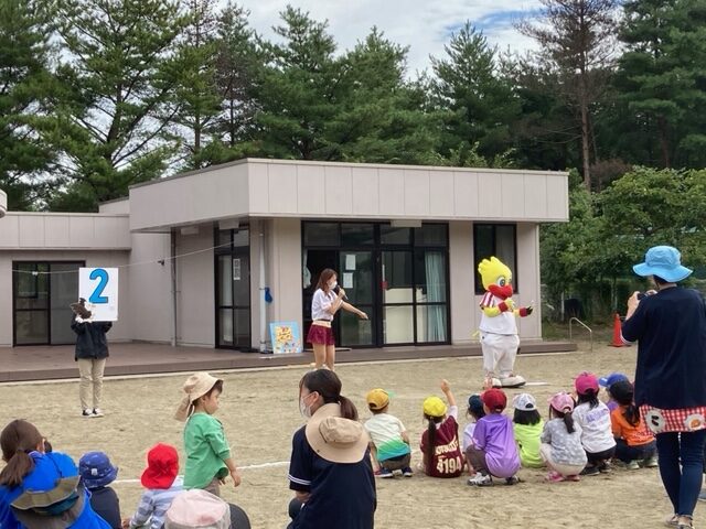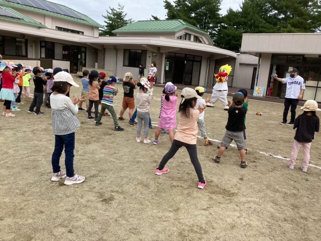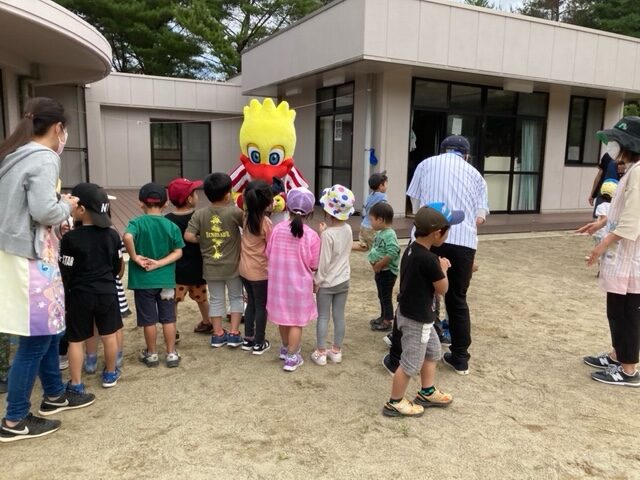 楽天イーグルスフレンドシップジャーニー❣ / お知らせ / By sendan 東北楽天イーグルスのマスコット「スイッチくん」と、チアの可愛いお姉さんが保育園に来てくれました✨クイズをしたり、イーグルぐるぐる体操を踊ったりと楽しい時間を過ごすことができました~✨
