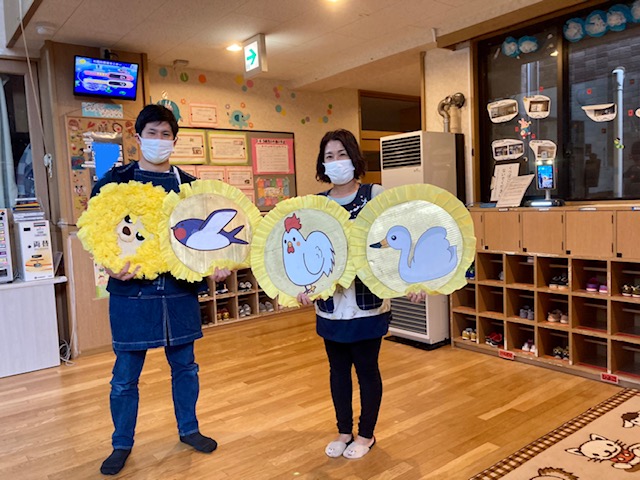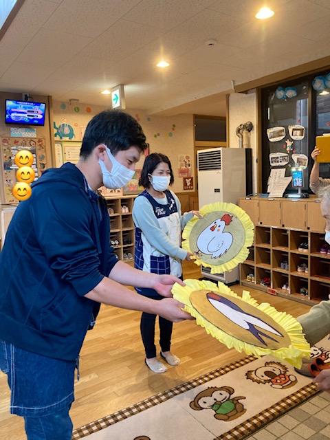 運動会ではお隣のフェリコ館の方々が、大きくて立派な応援旗を作ってくれ、そこにはクラス名の鳥さんのメダルが飾られていました🐤本日は、フェリコ館の方が保育園に来てくださり、大きな鳥のメダルを頂きました💝ありがとうございました~💝