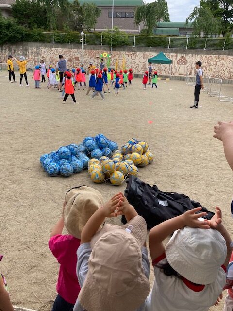 ベガルタ仙台キッズサッカーキャラバンが来てくださり、4歳児にわとり組、5歳児はくちょう組が参加しました😊