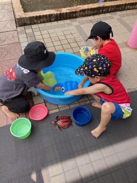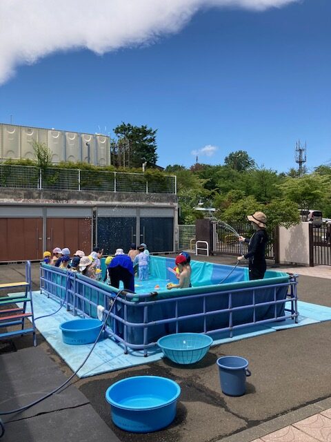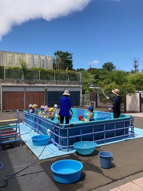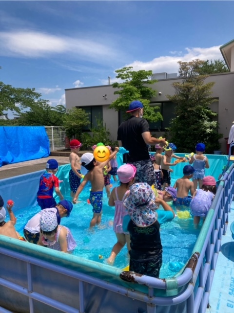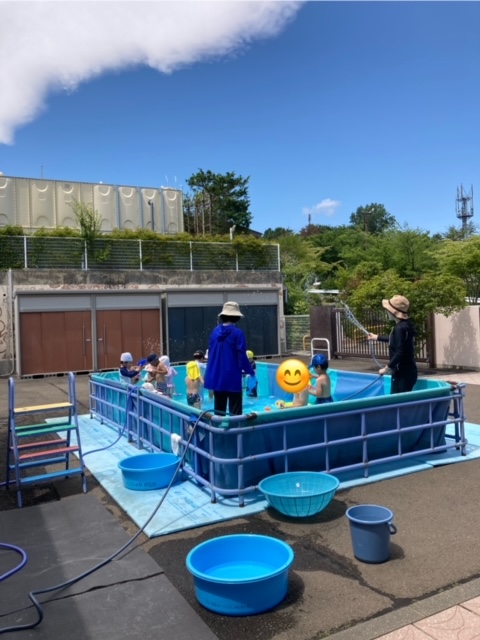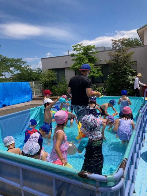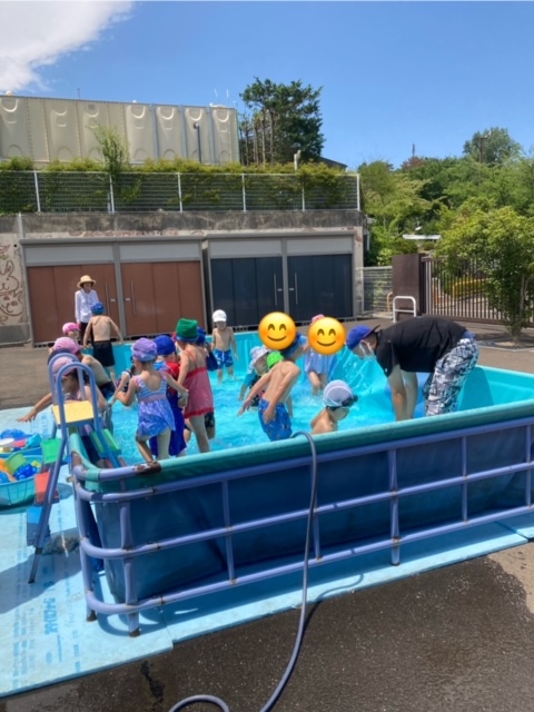 つばめ組、にわとり組のお友だちが、ピッカピカの笑顔でプール遊びを楽しみました💖